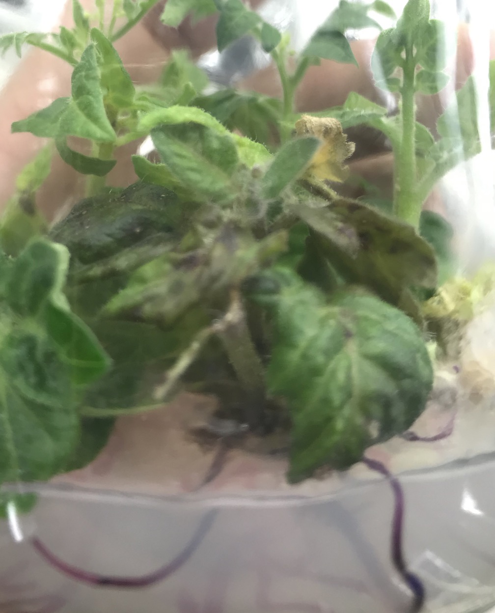 把花青素的代谢通路的基因,成功转入小番茄中,实现了花青素在番茄叶片和根种的积累。